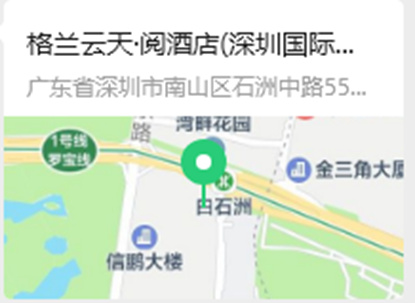 地址:广东省深圳市南山区石洲中路55号国际市长交流中心格兰云天.阅酒店(深圳国际市长交流中心店)七楼会议室